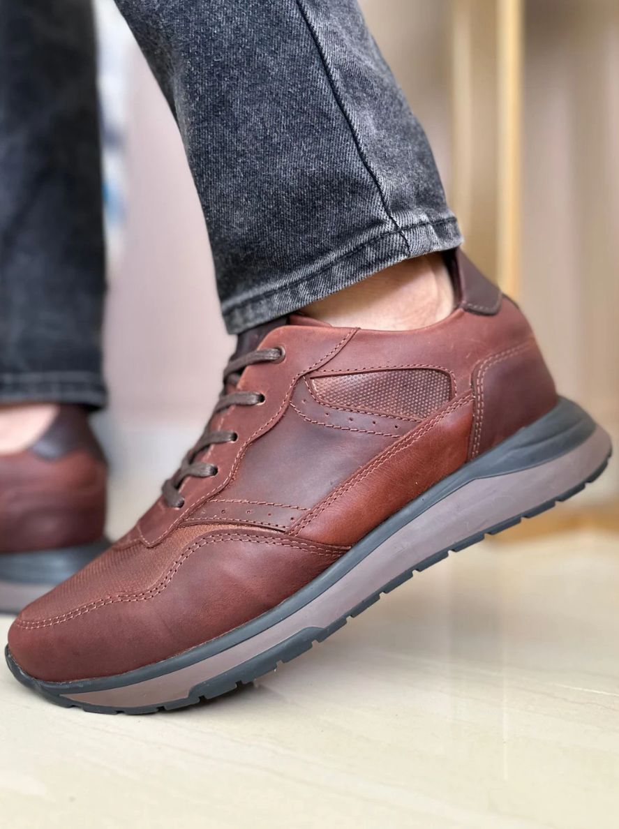 Step into comfort and elegance with these handcrafted brown leather sneakers — the perfect balance between casual and polished. Made with fine Colombian leather, their rich brown tone and texturized side panels add a subtle, stylish twist. The flexible sole ensures all-day comfort, while the clean lace-up design keeps your look sharp, whether you’re in jeans or chinos.