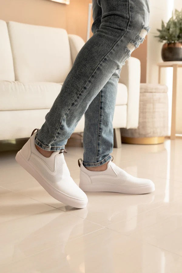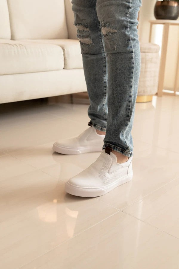 Clean, sleek, and undeniably modern—these handcrafted white leather slip-ons bring effortless elegance to your everyday wardrobe. Made in Colombia, they feature a breathable mesh panel and flexible fit for all-day comfort. No laces, no fuss—just slide in and go with style and ease.