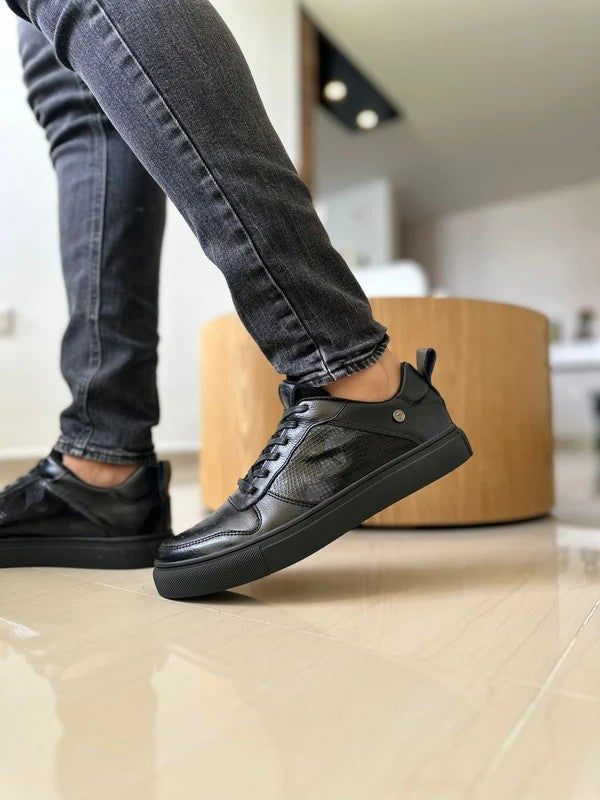 Bold and versatile, these black leather sneakers are designed for those who move with intention. Crafted by Colombian artisans, they feature a mix of smooth and textured leather that adds subtle depth without overcomplicating your outfit. The matte black sole completes a clean silhouette that works day or night.