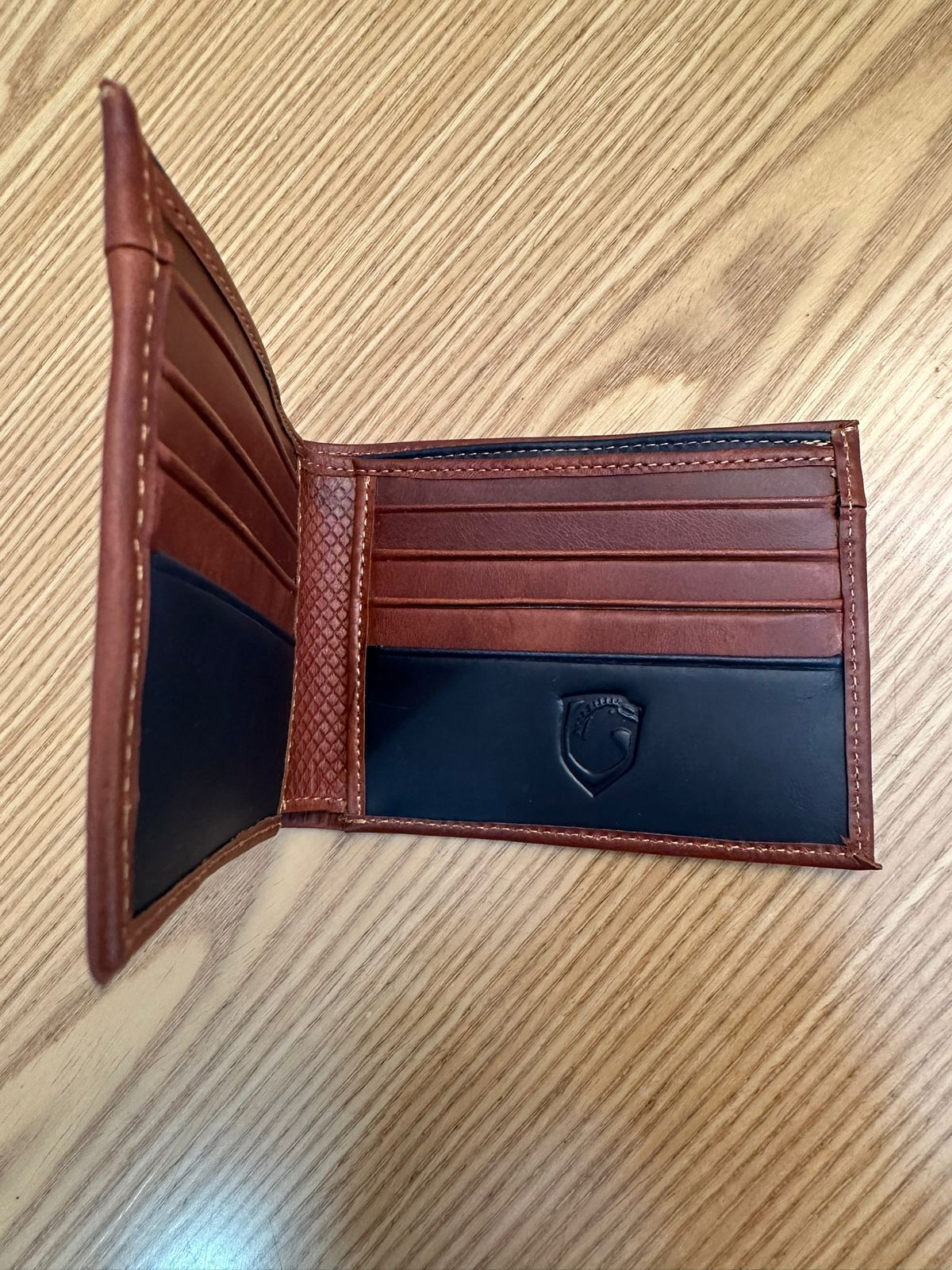 This warm brown wallet handcrafted in Colombia fuses tradition with subtle contrast, thanks to its deep black interior. Crafted from fine leather, it offers durability, practicality, and timeless appeal—ideal for those who want something different from basic black but just as versatile.